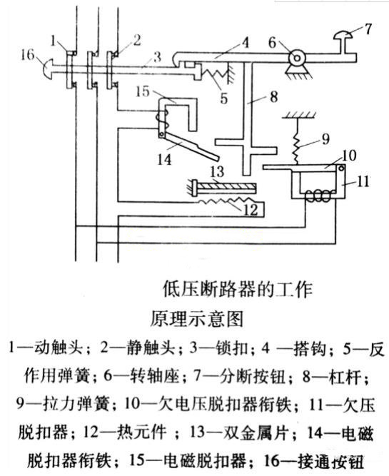 以防爆正压柜中安装的低压断路器为例,低压断路器的工作原理如下图所示: